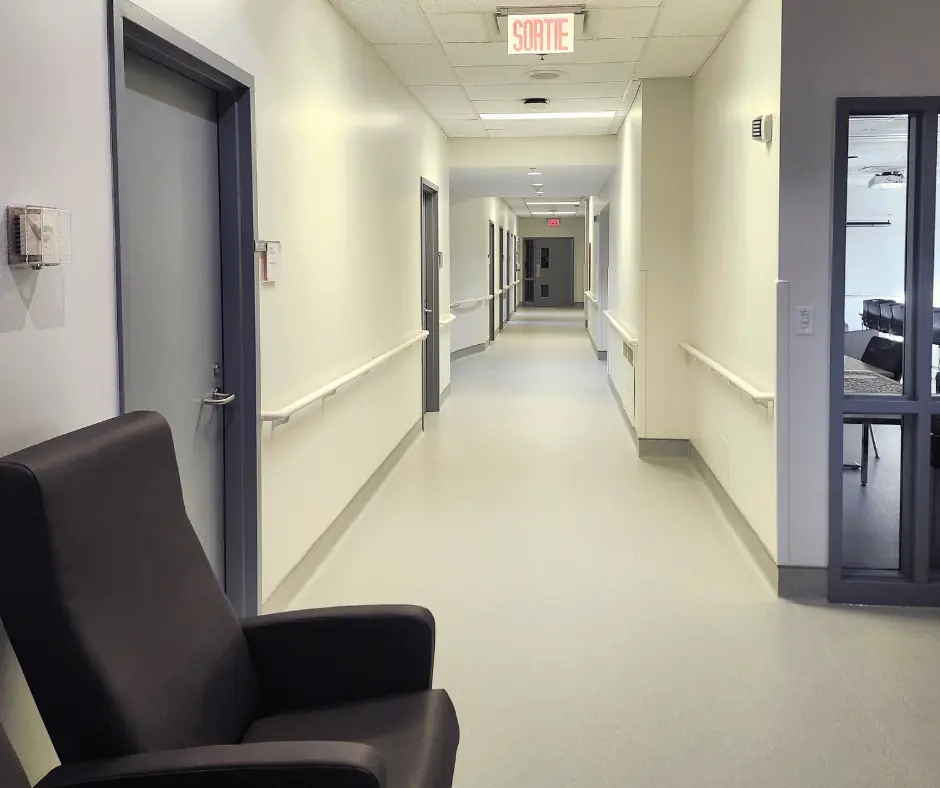 Rénovations dans l’hôpital de Sainte-Anne-de-Beaupré à Québec; Ce projet vise à moderniser plusieurs espaces de l’établissement afin d’améliorer les infrastructures et d’assurer un environnement de soins plus fonctionnel et sécuritaire. Grâce à l’expertise reconnue de Max Leclerc dans le domaine de la rénovation d’établissements de santé, les travaux ont été réalisés en respectant les normes strictes du secteur médical.